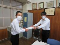 5月も残り10日を切りました。6月そして梅雨に入りそうです。さて、本日は、本町出身の画家(元高校美術教師)であられます石井秀隣様の貴重な作品をいただいており、そのお礼の会に石井様においでいただきました。本来ならば、全校生徒前でお礼を言わせていただき、先生からは作品への思いや中学生に一言をお願いしたいとも考えておりましたが、コロナ禍ということもあり校長室にて、生徒会の代表3名に出席しておもらい行いました。絵画を描き始めて70年の思いやこれからも描き続けたいという熱意をお話いただきました。作品は正面玄関左に飾りましたので、ご来校の際にはご鑑賞ください。