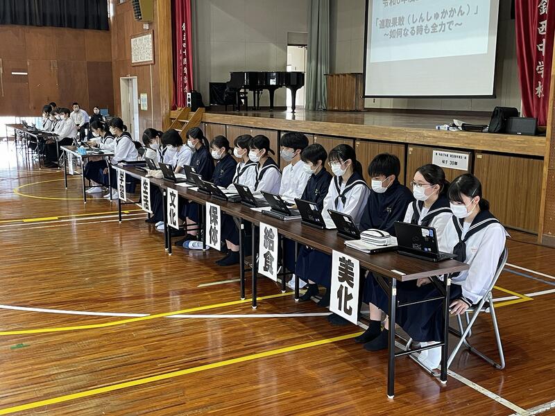 5月30日午後、令和6年度生徒総会が行われました。昨年から対面での生徒総会が復活し、直接意見を交わすことができました。生徒会スローガン「進取果敢 ~いかなる時も全力で~」のもと、全校生徒協力のもと1年間様々な行事に生徒が主体となって取り組んでいきたいと思います。