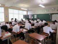 台風の進路が非常に気になるところです。さて、本日から明日までの予定で、3年生は実力テスト、1・2年生は定期テストが行われています。本日は、各学年とも3教科実施しました。手応えはいかがでしたか?明日まで計画されており、本日まで部活動も中止としていますので、残りの教科のテスト勉強を計画に行ってください。1・2年生においては、朝から冷房に不具合が生じ、終日冷房なしの生活でした。迷惑をおかけしました。