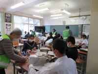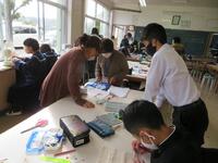 早いもので12月の第3週が終了いたしました。本日の午後は、各学年とも総合的な学習の時間でしたが、1年生は、「ものづくり交流会」と称して、5つのものづくり(防災グッズ・マイバッグ・牛乳パックリサイクル・ミニ門松づくり・リースづくり)に挑戦いたしました。それぞれの活動に町内在住の皆様が、講師として20名程おいでいただきご指導いただきました。生徒の皆さんは、ご指導のもとそれぞれの作品を丁寧に作り上げていました。ご指導いただきました皆様方、本当にありがとうございました。生徒の地域貢献も考えていきたいと思います。
