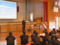 毎朝、今季の最低気温を更新していっている気がしています。さて、本日の午後は、町教育委員会が主催いたしました「防災教育講演会」を行いました。講師は、宮城県仙台市在住のYY防災代表、防災減災危機管理アドバイザーの吉田亮一様でした。内容は、「自然災害はなぜ起きるのか?」「地球は生きものである。」それゆえ、「危機感と想定以上の備えが防災・減災の基本」「地域の一員として何ができるか?」「地域内の活動は当たり前」「炊き出しの基本」「中・高生は地域を救う」といった中学生がどう考えて行動すべきかを考えてもらうための貴重で重要な講話でした。遠路、本町までおいでいただき感謝申し上げます。いざという際にこのお話が生かせるのようにしてまいりたいと思います。ありがとうございました。