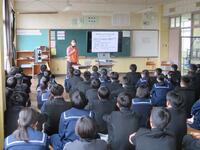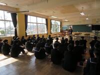 本日は、雨の中の登校でした。雨となると晴天時よりも正門前が車で混雑します。さて、本日の3年生の総合的な学習の時間は、健康教室(性教育)でした。宮崎か母ちゃっ子くらぶの白池晶様を講師にお迎えして、「思春期の特徴やからだの発達」「性に関する正しい知識」等についてお話しいただきました。これから心身ともに大人へと成長していく中学生にとってはとても意義のある時間だと思います。また、講師の白池様が帰り際に、話を聞く態度や話し合いなどに積極的に関わる生徒に関心と感謝の意を表して帰られました。講師(指導者)が気持ちよく講話(授業)ができる雰囲気がある学級・学年づくりができていることに感激いたしました。講師の皆様、ありがとうございました。