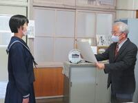 昨日、9日(木)に公益財団法人「石井十次顕彰会」より3年の別府胡麦さんに「なわのおび賞」が授与されました。「なわのおび賞」は、町内の小・中学生を対象に、石井十次の精神や生き方を継承してもらおうと平成26年に制定され、善行やスポーツ、芸術などで素晴らしい活動や業績を残した児童生徒に贈られる賞です。別府さん、おめでとうございました。これからの活躍も期待しております。