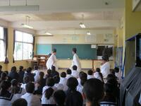 昨日の5校時に2年生と保護者代表の皆さまを対象にした学校保健委員会を行いました。今回の内容は、講師の東児湯消防組合署員の方から「AEDの取扱いや注意事項」について説明をいただき、その後、人形を使用しての実技講習でした。参加した生徒は、「命」に係る講習であることから真剣に話を聞き、実技講習も緊張しながら取り組んでいました。本日学んだことを活かす機会がないに越したことはありませんが、人命救助に遭遇した際には、今回の講習をぜひ、勇気をもって実践してほしいと思いました。また、周囲の大人に即知らせる、救急車を呼ぶなどの対応でもよいかと思います。講師の先生、本日参加いただきました保護者の皆様、ありがとうございました。