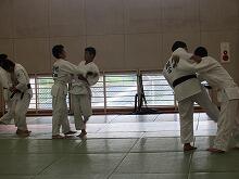 体育館では男子バレーボール部と女子バレーボール部、武道場では柔道部が練習していました。