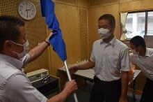 今日はその推戴式を行いました。例年は体育館に全校生徒が集まり、ユニフォームに着替えて行いますが、今回は校内放送を使い、各部のキャプテンやクラブの代表者が抱負を述べ、その後、生徒会代表の激励の言葉、校長先生の話、選手宣誓を行いました。また、各部・各クラブの抱負を述べる際には、教室にいる部員やクラブメンバーは起立し、「お願いします」と声を合わせていました。