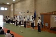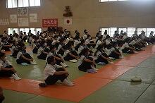 武道場では、剣道部が他校を向けて練習試合を行っていました。写真は、試合前に合同で稽古を行っているときのものです。