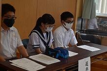 生徒会役員選挙立会演説会を行いました。コロナウイルス感染症防止のための「新しい生活様式」を考慮し、今年の演説会は、学年ごとに場所を変えて行い、候補者は3会場で自分の思いを発表しました。立候補者は、緊張しながらも生徒会役員として取り組みたいことを堂々と発表し、それを聞く生徒もよく聞いていました。生徒会活動について考えるよい機会になったと思います。