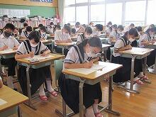 今日と明日、3年生は地区の実力テスト受けます。今回は、志望校・学科別の順位も出ます。今日は国語、理科、英語のテストがあり、登校後から教室で熱心に勉強している生徒もいました。明日は社会と数学のテストがあります。