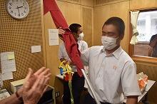 今日はその推戴式を行いました。例年は体育館に全校生徒が集まり、ユニフォームに着替えて行いますが、今回は校内放送を使い、各部のキャプテンやクラブの代表者が抱負を述べ、その後、生徒会代表の激励の言葉、校長先生の話、選手宣誓を行いました。また、各部・各クラブの抱負を述べる際には、教室にいる部員やクラブメンバーは起立し、「お願いします」と声を合わせていました。