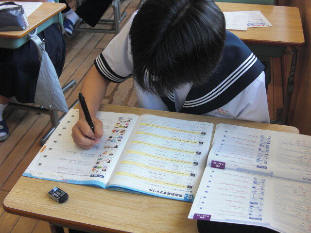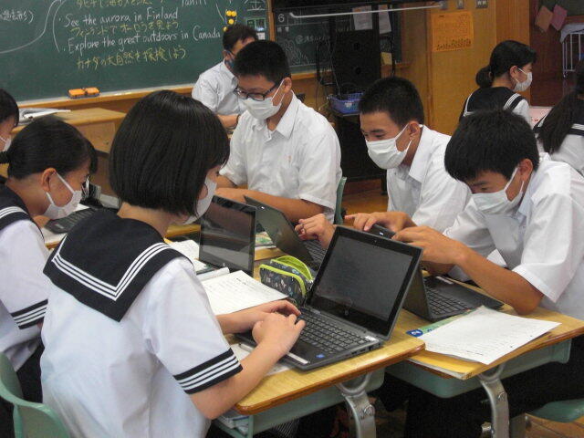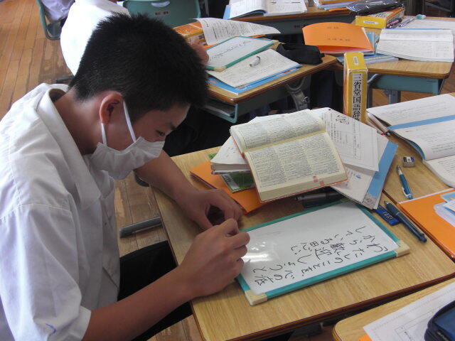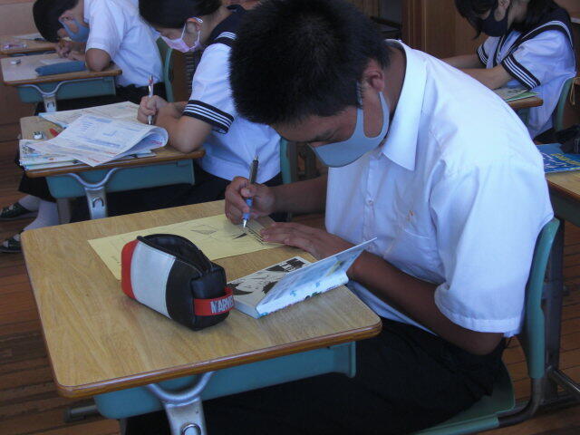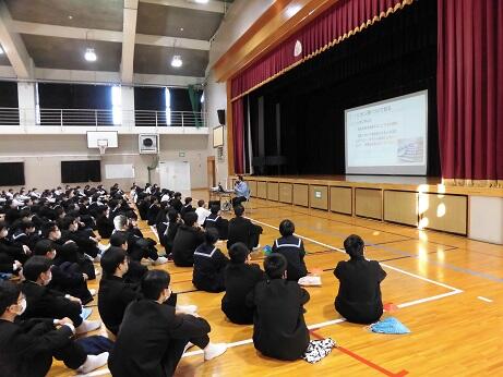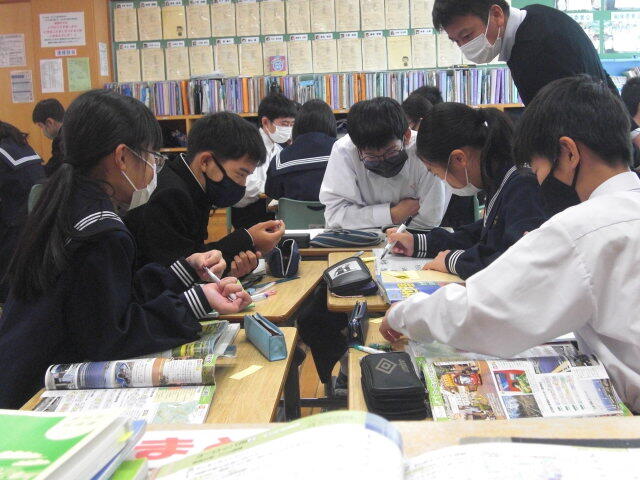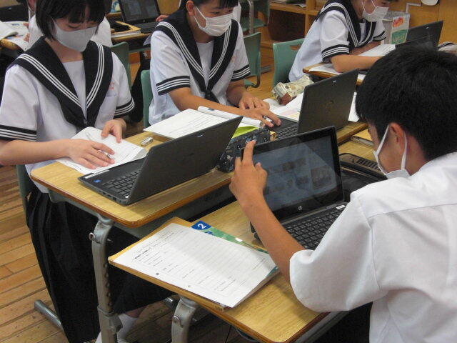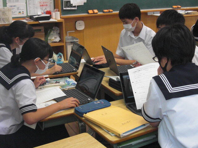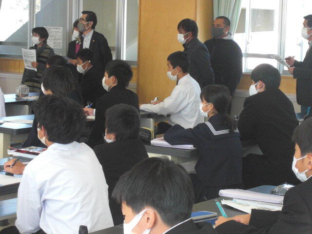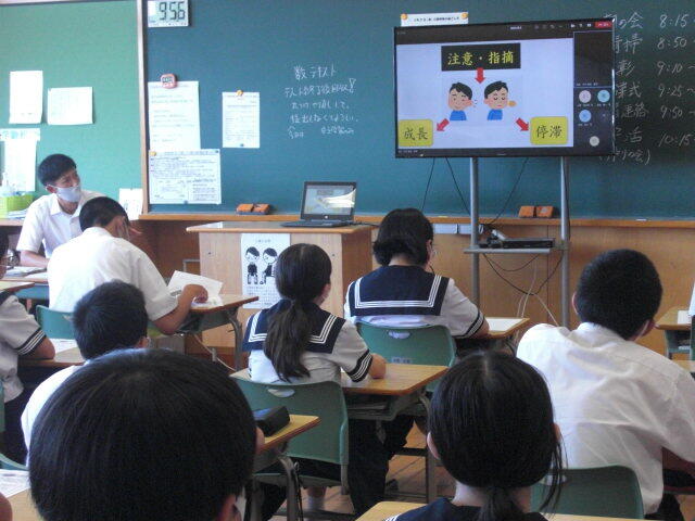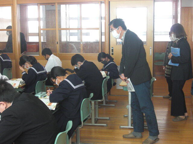 進路学習で、高校入試について学びました。副担任が授業をするなど、学年職員の協力のもとで進められていました。