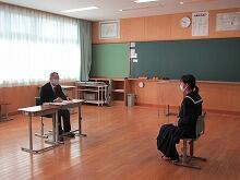 高校入試では面接が行われます。先日は、面接官役を校長先生と教頭先生が担当して練習をしていました。普段直接話すことが少ないからか、これまでの練習よりも緊張したようです。