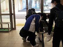 リフレッシュデーの日は部活動がなく、生徒は全員下校します。生徒玄関を見ると、2年生の男子数名が玄関の掃除をしていました。これまでも3年生が自主的に掃除をしている様子はありましたが、今日は2年生でした。これから”学校の顔”として活動していく2年生の意識の高まりを感じました。