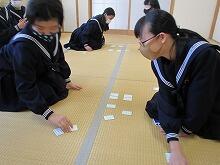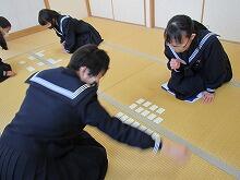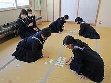 富田中の校舎の2階には和室があり、週2回程度1年生が昼休みにかるた(百人一首)をしています。2学期に生徒が希望したことをきっかけに始まり、今では多くの歌を覚えています。これをきっかけに、国語や古文、短歌などに興味をもってくれることを願っています。