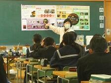 黒板にも「めあて」や「まとめ」が書いてあります。また、教育機器を使って、分かりやすい授業に努めています。