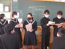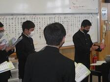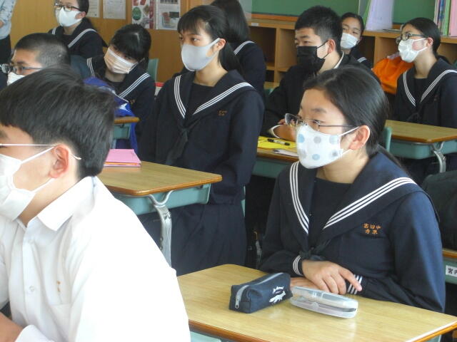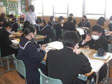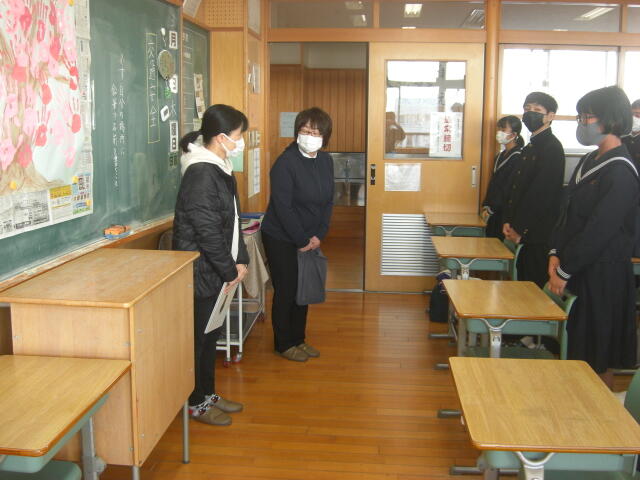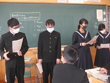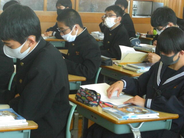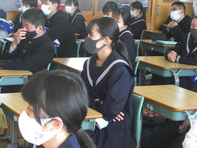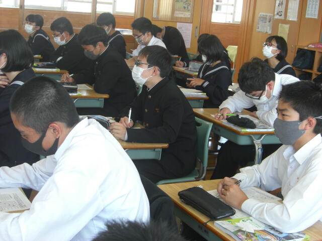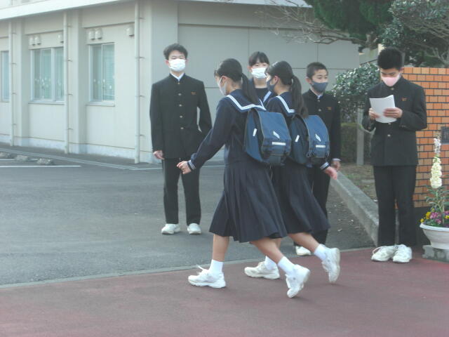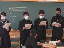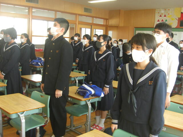 今日から3学期が始まりました。始業式を放送で行い、各学年と生徒会執行部それぞれの代表生徒が新年の抱負を発表しました。その後、校長先生の話がありました。新型コロナウイルス感染防止のため、全校生徒が体育館に集まっての始業式ではありませんが、教室では、静かに放送を聞いていました。