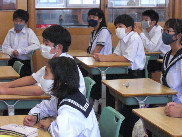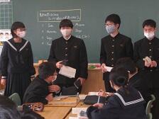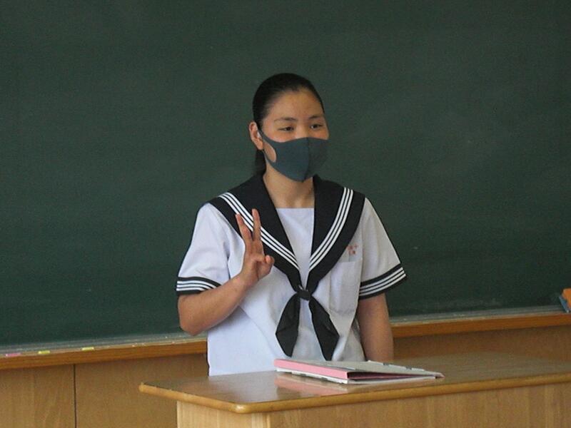 新富町老人クラブ連合会の代表の方が来校され、3年生全員に手作りマスクを寄贈してくださいました。