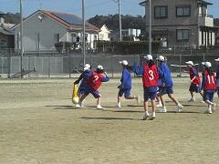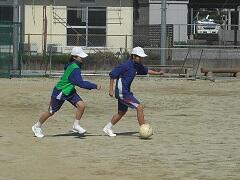 体育ではサッカーをしています。3校時の3年2組の様子です。風もなく、気温も上がってきました。青空のもとで、歓声や笑い声が絶えず、楽しく試合をしました。たくさん動いたので、「暑い!」という声も聞こえてきました。