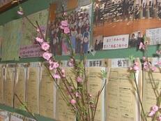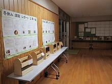廊下には技術の授業で製作した本立てなどの木材加工作品や美術の授業で制作した表札が展示してあります。また、国語の授業で表現技法を用いて書いた詩や家庭科の冬休みの課題で取り組んだ調理レポート、2年生が書いた「立志の誓い」や「決意」などが掲示してありますので、参観の際にご覧ください。