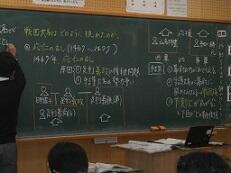 1年生の数学では、今、データの活用について勉強しています。これからの情報社会を生き抜くために必要な力です。図形や計算ではなく、与えられた資料を分析したり結果から新たなことを見いだしたりすることができるようになるために真剣に勉強していました。