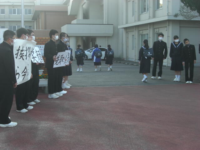 今日は3学年の各学級委員長が代表でマスクを受け取りました。皆様のお気持ちを励みに、受験勉強にも励むことと思います。ありがとうございました。