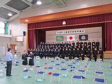 4月に本校に入学を予定している保護者を対象に新入生説明会を実施しました。例年は6年生児童も出席し、授業や部活動の様子を見学しますが、今年は新型コロナウイルス感染症拡大防止のため、体育館でソーシャルディスタンスをとり、保護者への説明だけ行いました。