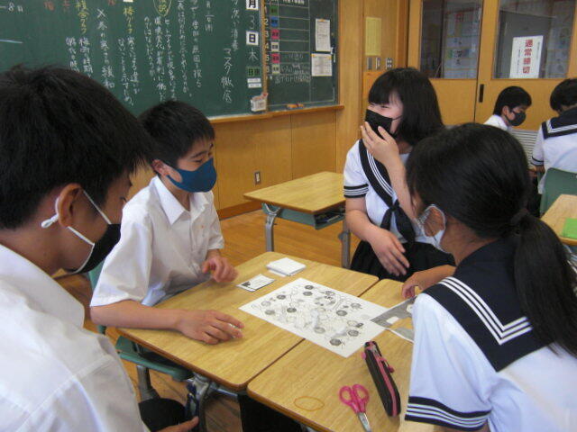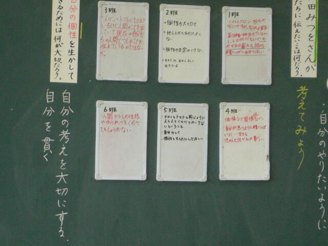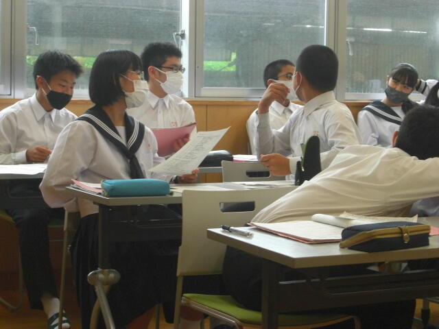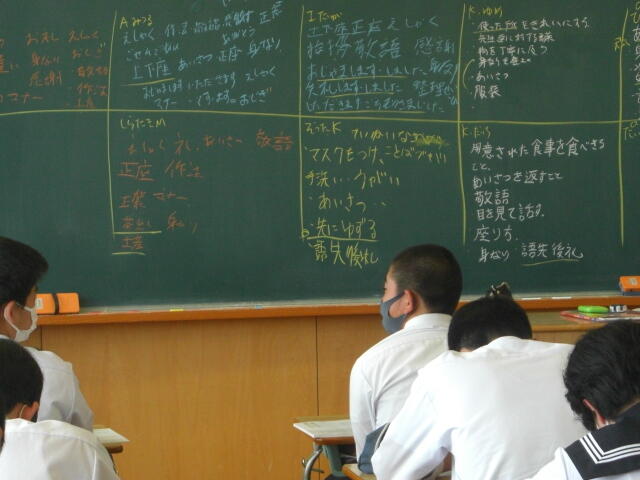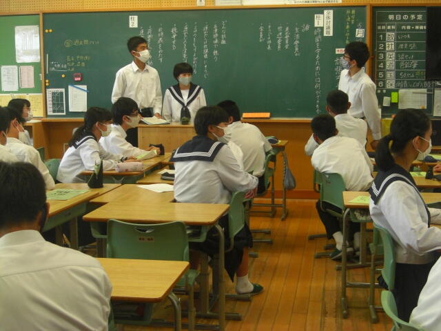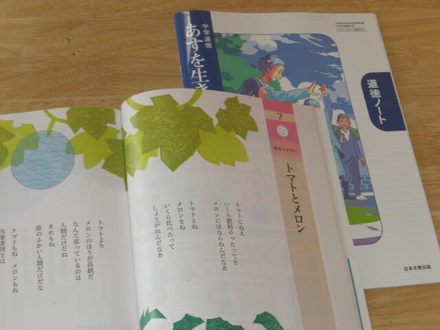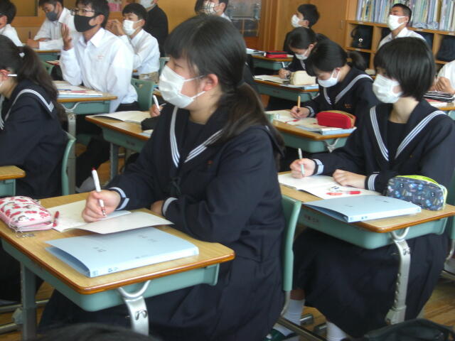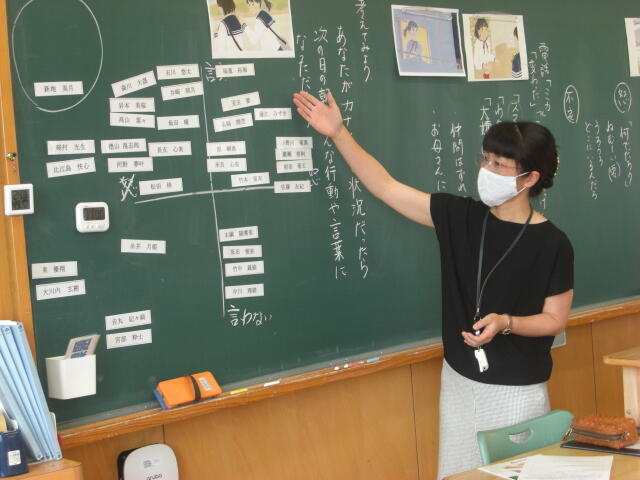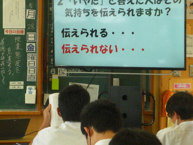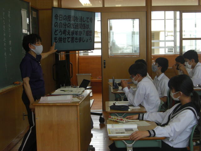 各学級で道徳の授業も計画的に行っています。教材(資料)や登場人物なども、生徒に親しみのあるものが多くなってきました。