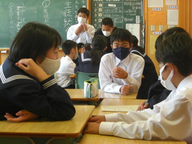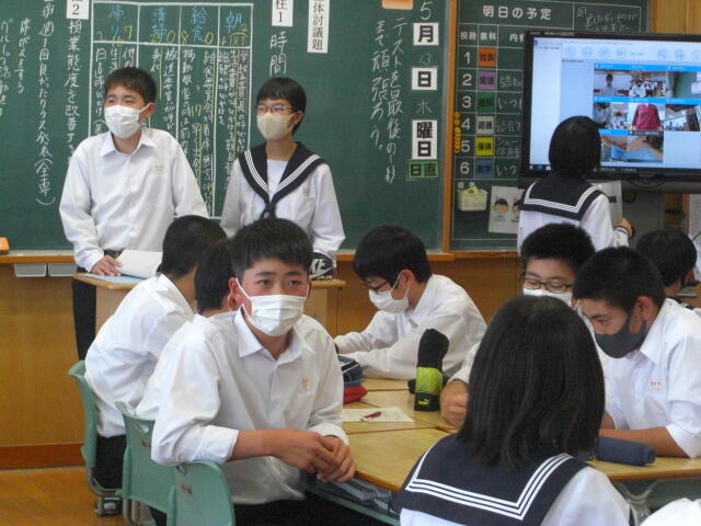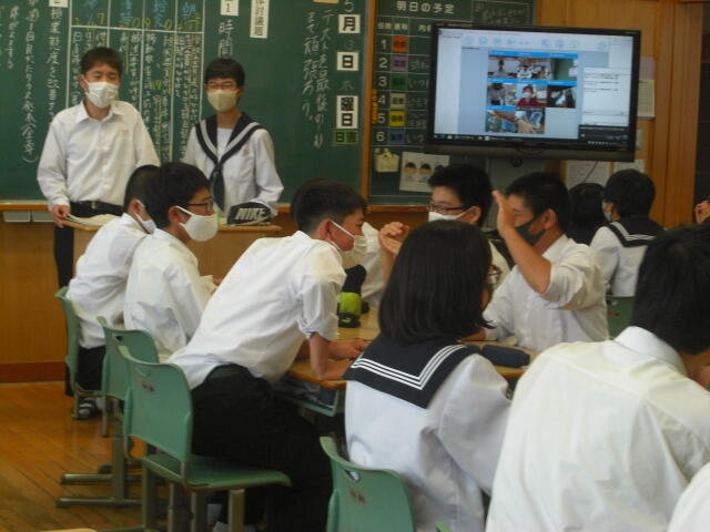 るぴなす支援学校との交流会に向けての話し合いをしました。2組の様子です。司会者を中心にして、要領よく進めていました。小学校での経験も生きているのだと思います。