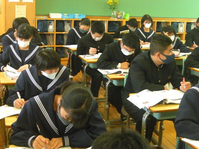 3年生にとっては、今月末の私立高校入試や2月の県立高校推薦入試、3月の県立高校一般入試に向けての最後の実力テストになりました。また、2年生にとっては、「3年生=受験生」となる前に志望校を真剣に考える機会にもなりました。、