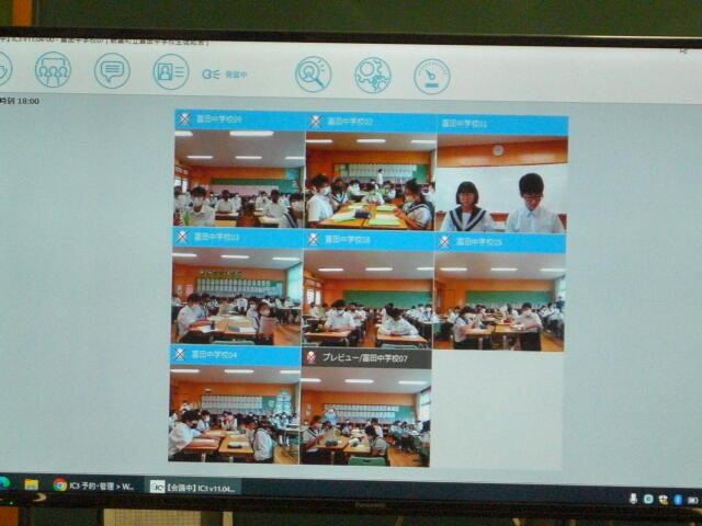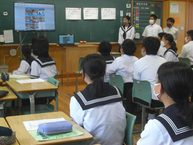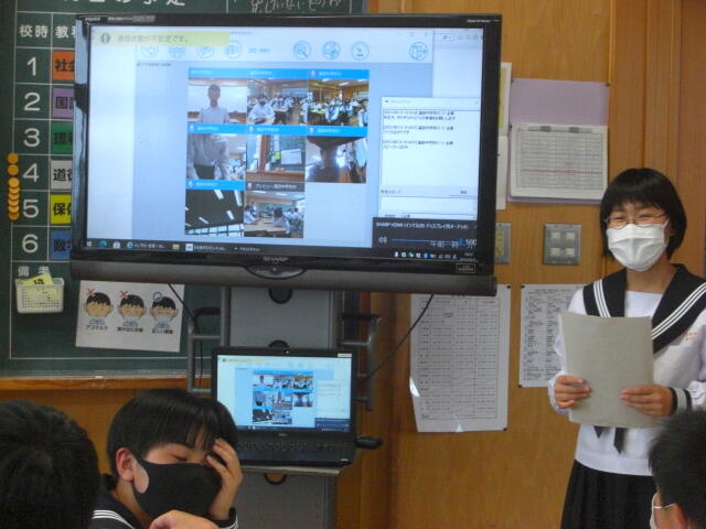 今日の午後は、生徒総会です。3密を避けて、各教室と執行部控室とをテレビ会議システムでつないで行っています。