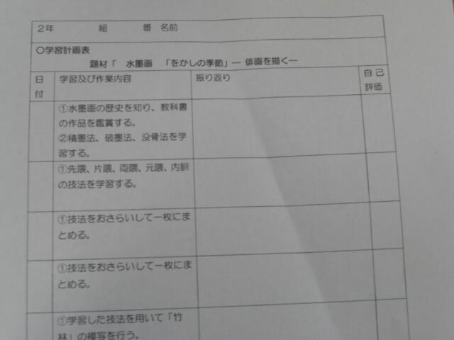 向を確認することも大切です。下の写真の「学習計画表」は、よい例です。