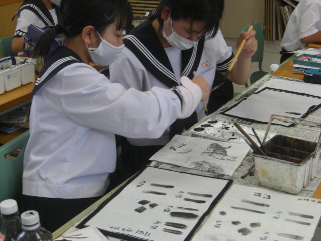 の様子を紹介していきたいと思います。今回は、1年1組の美術です。楽しそうに学んでいました。家庭で「どんなことがあった