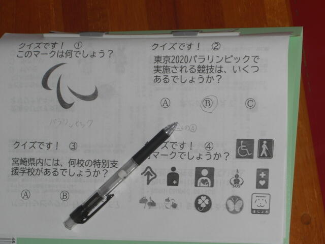 今日の午後は、総合的な学習の時間です。1年生は、7月にるぴなす支援学校を訪問して交流活動を予定していますので、事前学習を行いました。るぴなす支援学校の先生においでいただいて、講話をしていただきました。