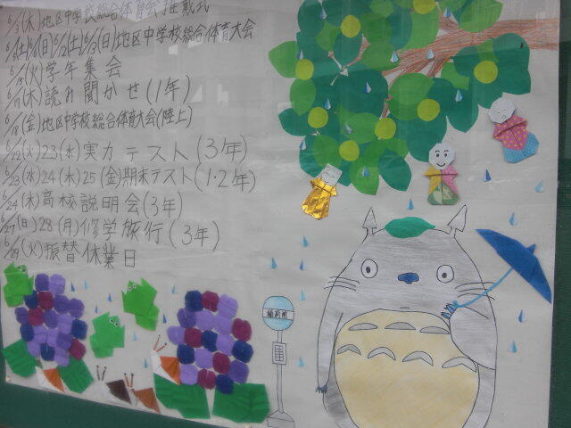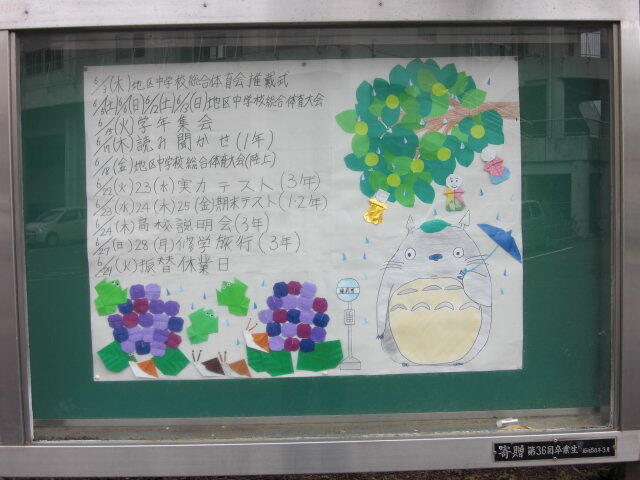 6月に入りました。正門横の掲示板も模様替えしました。生徒の作品です。