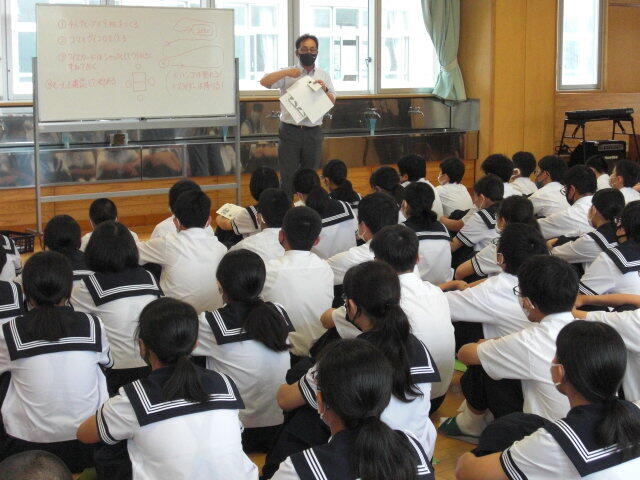 までのキャリアやこれからの取り組みなどを学びました。体育館には、スポットバズーカという空調設備が設置されたので、快