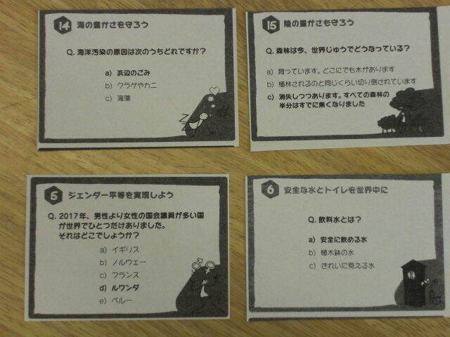2年生は、SDGs(持続可能な開発目標)について学んでいます。今日は、クイズ形式のすごろくゲームをしながら理解を深めました。