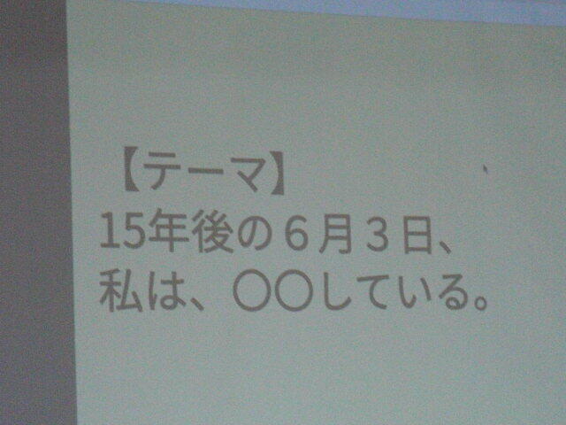 3年生は、キャリア教育の一環で「未来を考える」というワークショップをしました。前半は、15年後の自分について、友