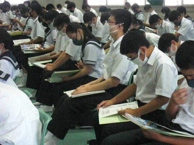 3年生と、その保護者を対象にした高校説明会を実施しました。今日は、宮崎大宮高校・宮崎南高校・宮崎北高校・宮崎商業高校・鵬翔高校・宮崎学園高校・宮崎第一高校の7校に来ていただきました。第2回を7月9日(金)の参観日に実施する予定です。