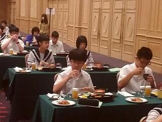 夕食のコース料理の様子が写真で送られてきました。どうぞ、3年生の真剣な顔をご覧ください。