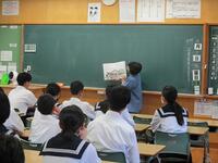 26日(木)、朝の時間に、1年生は読み聞かせを実施しました。童心に返ったように聞き入っている生徒もいました。