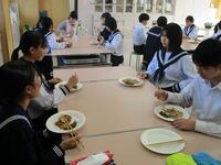 14日(火)に2年3組の家庭科は生姜焼きの調理実習でした。グループのメンバーで協力しながら調理、片付けを行っていました。彩りを考えて盛り付けていました。家でも生姜焼きを挑戦してみましょう。