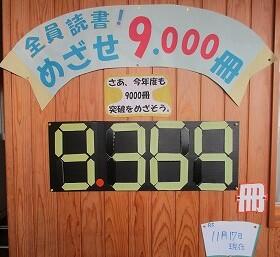 今年度9,000冊を目標に図書委員会を中心に取り組み目標達成しました。前回HPに掲載した10月23日から約1ヶ月(下記の写真 11月17日現在)で1,000冊を読んでいます。10,000冊に到達するのはいつ頃になるでしょうか?今年中に達成できる可能性は十分にあります。