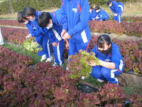 実験室ではクリーンルーム体験とミカンの缶詰づくり、園芸科学を体験した班では、12月に収穫できるイチゴを鉢に植えお土産に一鉢もらいました。
