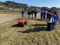 各クラスが時間をずらして町福祉バスに乗り、牧場やスマート農業(ドローン・ロボット草刈り機)、実験室、温室等で体験しました。