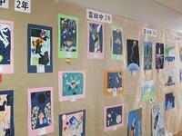 廊下に、美術の作品や習字が掲示されています。学校に来校された際は、生徒の作品をみてください。