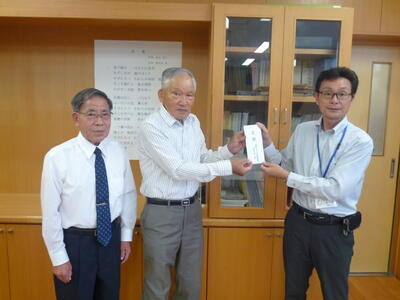 同窓会は今年で最後となるが、母校のために何かできないかとのことで、図書券の寄贈となったとのこと。