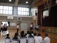 後半は、体育館に集まり、「清掃活動のレベルアップするためには、どうすればよいか」「笑顔あふれる学校にするためには、どうすればよいか」の2つの共通議題について、話し合いを行いました。生徒たちが考えた対策でこれからは新たな活動がはじまります。