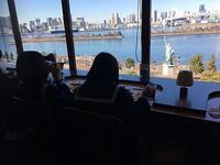 東京に着きました。(お台場です。)天気もよく、昼食もおいしいそうです。自由の女神像もあります。