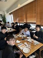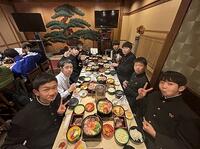 浅草で、お笑い芸人に遭遇しました。また、夕食の様子です。全員元気で1日目を終えたそうです。