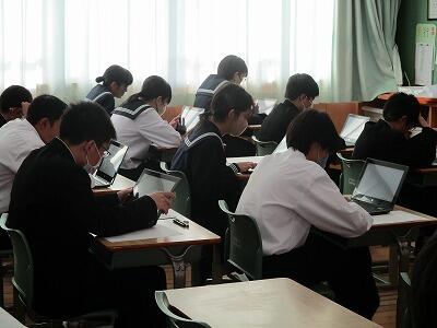 29日(水)30日(木)に「みやざき学習状況調査」を実施します。本日は3教科(国・理・英)、明日は2教科(社・数)があります。今回からWEb上での回答する形式に変わりました。生徒はタブレットからアクセスし、問題・解答に取り組みます。GIGAスクールにより、テストの在り方も変わっていきます。